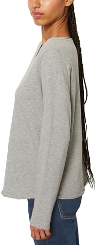 Marc O'Polo Denim Damen Langarmshirt aus Bio-Baumwolle mit U-Boot-Ausschnitt, Grau (Grau), L