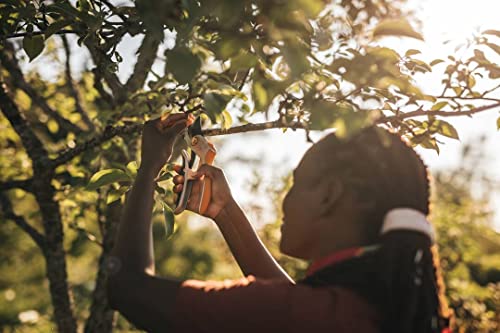 Fiskars PowerLever Bypass-Gartenschere für frische Äste und Zweige, Antihaftbeschichtet, Stahl-Klingen/Aluminium-Griffe, Schwarz/Orange, Plus, P751, 1057172