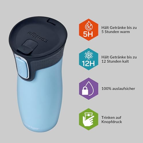 Contigo Unisex-Adult West Loop Autoseal Thermobecher, Edelstahl Isolierbecher, Kaffeebecher to Go, BPA frei, auslaufsicherer Reisebecher mit Easy-Clean-Deckel, hält bis zu 5h warm, 470 ml, Iced Aqua