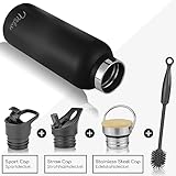 Edelstahl Trinkflasche 500ml 750ml 1000ml +3 Deckel - Thermosflasche mit Stro...