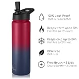 Milu Edelstahl Trinkflasche 500ml, 750ml, 1L (+3 Deckel) - Thermosflasche mit Strohhalm, Isolierte Wasserflasche, Auslaufsichere Isolierflasche doppelwandig, Kohlensäure geeignet (Berry Blau, 750ml)