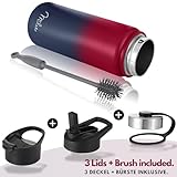 Edelstahl Trinkflasche 500ml, 750ml, 1L +3 Deckel Thermosflasche mit Strohhal...