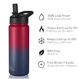 Milu Edelstahl Trinkflasche 500ml, 750ml, 1L (+3 Deckel) Thermosflasche mit Strohhalm, Isolierte Wasserflasche, Auslaufsichere Isolierflasche doppelwandig, Kohlensäure geeignet (Berry Blau, 0,5L)