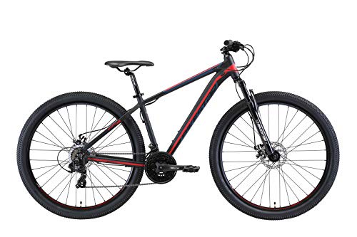 BIKESTAR Hardtail Aluminium Mountainbike Shimano 21 Gang Schaltung, Scheibenbremse 29 Zoll Reifen | 17 Zoll Rahmen Alu MTB | Schwarz Rot