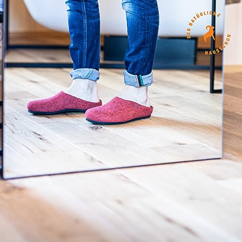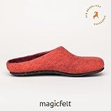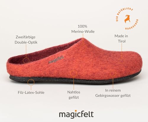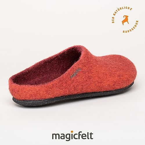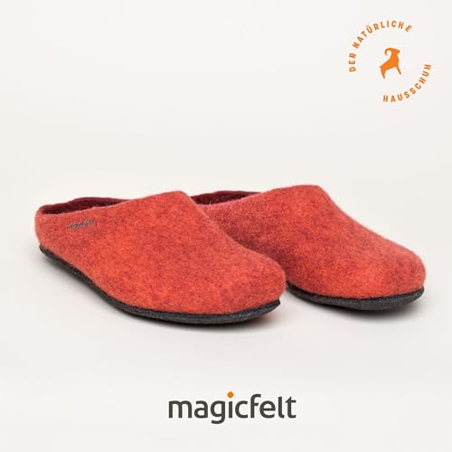 Magicfelt Filzpantoffeln 709 aus Mulesing-freier Merino-Schurwolle – Handgefertigte & anatomisch geformte Hausschuhe für Damen & Herren Größe EU 36-50 – Filzclogs mit Filz-Latex-Sohle Salmon, 39