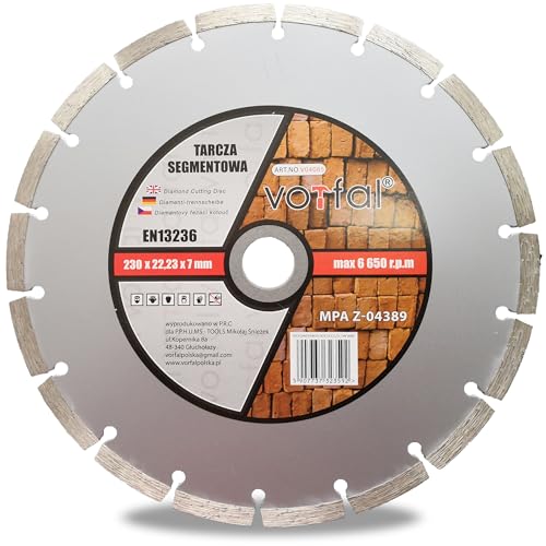 Vorfal Diamanttrennscheiben 230 mm universal Segment Diamant Trennscheibe 230 x 22,23 mm mm für Stein, Beton, Granit, Mauerwerk, Steingut, Ziegel, Diamant Trennscheiben 230 x 22,3 x 7 mm (230mm)