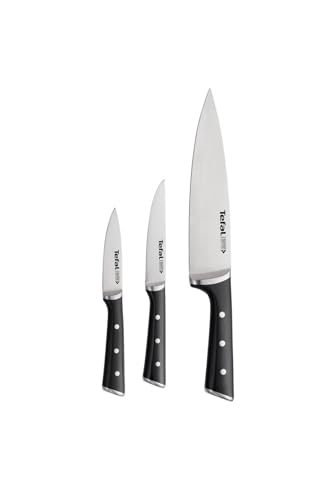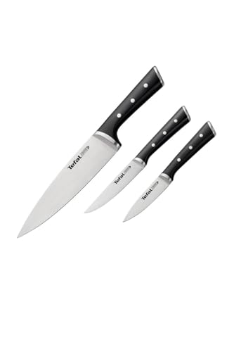 Tefal Ice Force 3-teiliges Messerset, Schälmesser 9cm, Chef-Messer 20cm, Universalmesser 11cm, deutscher Edelstahl, ergonomischer Griff, lang anhaltende Schneideleistung und Schärfe, schwarz, K2323S
