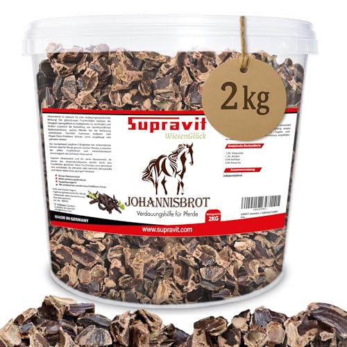 Supravit Johannisbrot 2kg – naturreines Carob Pferdefutter | getrocknete Johannisbrot-Schoten als Futterergänzung & Pferdeleckerli | ballaststoffreicher Pferdesnack für eine artgerechte Fütterung