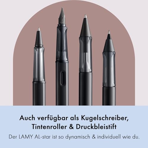 Lamy AL-star black Füller – Füllhalter mit ergonomischem Griff & schwarzer Stahlfeder in Strichbreite EF – leichtes Aluminiumgehäuse – inkl. Tintenpatrone T 10 blau – Rechtshänder
