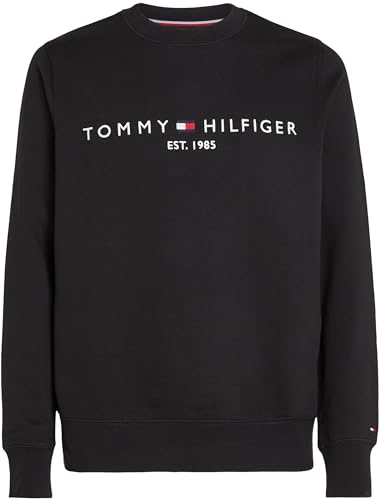 Tommy Hilfiger Herren Sweatshirt Tommy Logo ohne Kapuze, Schwarz (Black), M