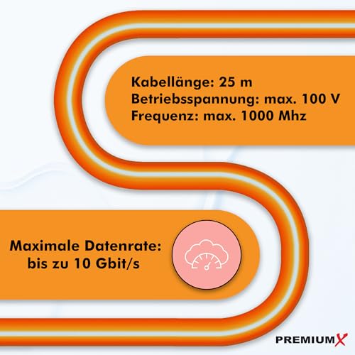 Premium X CAT 7 Netzwerkkabel 25m LAN Kabel Simplex Kupferkabel Ethernet Datenkabel S/FTP PiMF PoE Eca Kat7 Verlegekabel Installationskabel für müheloses Verlegen
