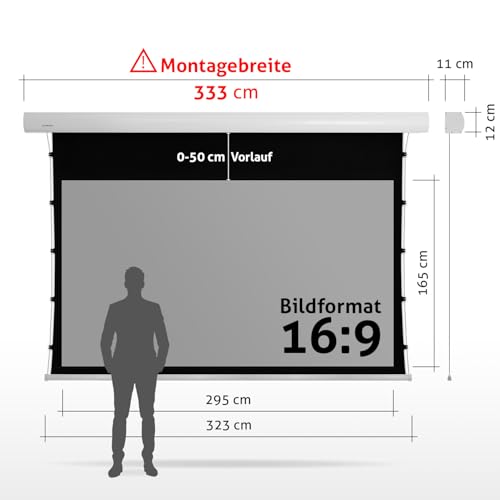 ESMART Expert XTS Tageslicht-Tension-Leinwand Grau 333 cm Bild 295 x 165 cm (133") 16:9 | Fernbedienung | Heimkino elektrische Beamer Projektionsleinwand Motor Tension Leinwand