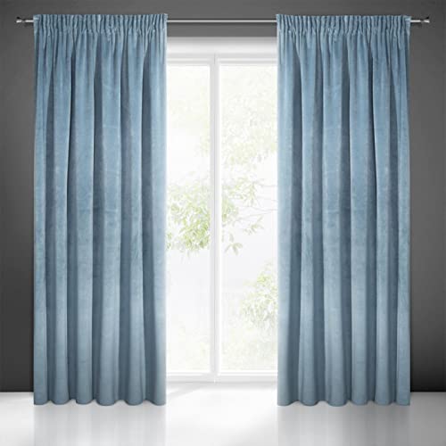 Eurofirany Villa Vorhang Samt Velvet Weich Kräuselband-1 STK. Edel Gardine Dick 290 g/m2 Elegant Glatt Einfarbig Flauschig Modern Klassisch Wohnzimmer Schlafzimmer Lounge, Blau, 140X270cm