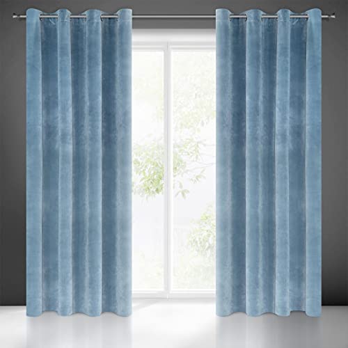 Eurofirany Villa Vorhang Samt Velvet Weich 10 Ösen-1 STK. Edel Gardine Dick 290 g/m2 Elegant Glatt Einfarbig Flauschig Modern Klassisch Wohnzimmer Schlafzimmer Lounge, Blau, 140X250cm