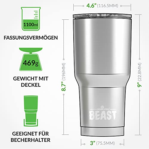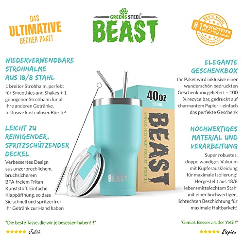 Greens Steel Beast Tumbler – 1050 ml (40 oz), Aquamarinblau | Wiederverwendbarer Edelstahl, vakuumisolierter Becher | mit 2 Strohhalmen & Reinigungsbürste | Doppelwandiger Reise-Thermobecher