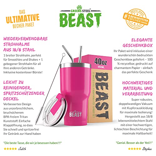 Greens Steel Beast Tumbler – 1050 ml (40 oz), Cup Cake Pink | Wiederverwendbarer Edelstahl, vakuumisolierter Becher | mit 2 Strohhalmen & Reinigungsbürste | Doppelwandiger Reise-Thermobecher