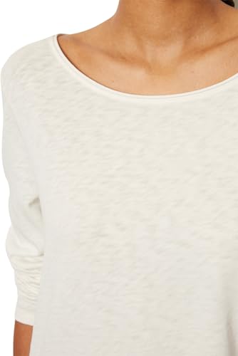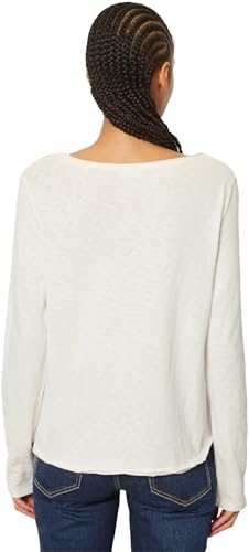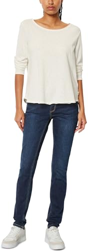 Langarmshirt MARC OPOLO DENIM, Damen, Gr. S, weiß (wollweiß), Slub, Obermaterial: 100% Baumwolle, unifarben, figurbetont hüftlang, U-Boot-Ausschnitt, abgesteppt, Shirts Langarmshirt, als tolles Langarm-Basic
