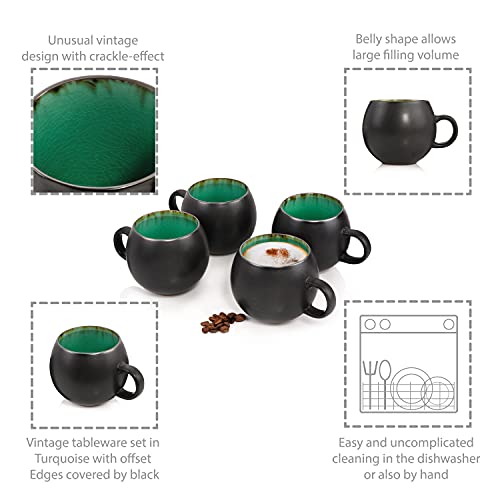 SÄNGER Cappuccinotasse 4 teilig, 4-tlg., Steingut, Grün Schwarz, 500ml, PREMIUM COLLECTION