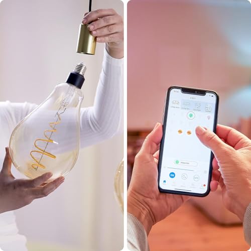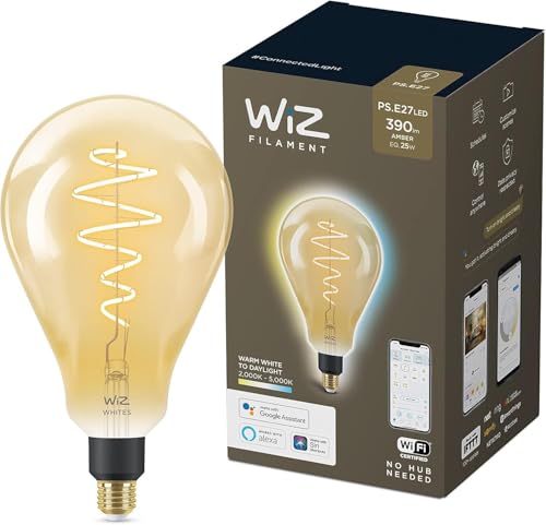 WiZ Tunable White Amber LED Lampe E27 (390 lm), PS160, 25 W Filament Lampe im Vintage Design mit bernsteinfarbenem dimmbarem Licht, smarte Lichtsteuerung über WLAN per Stimme/App