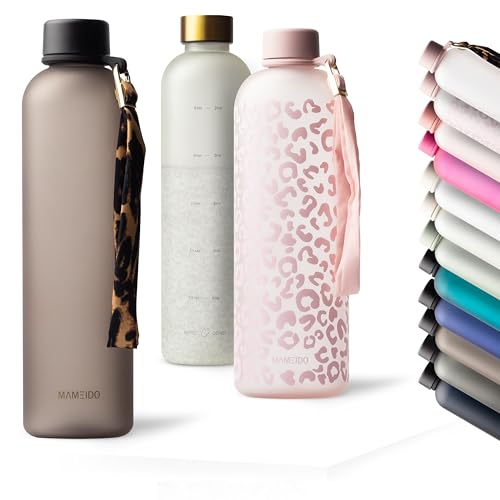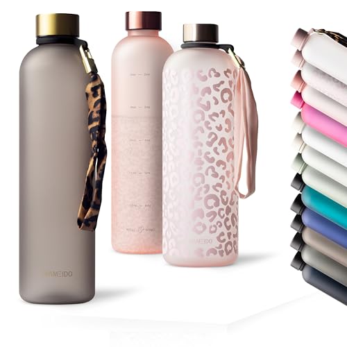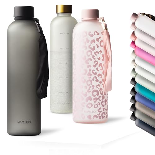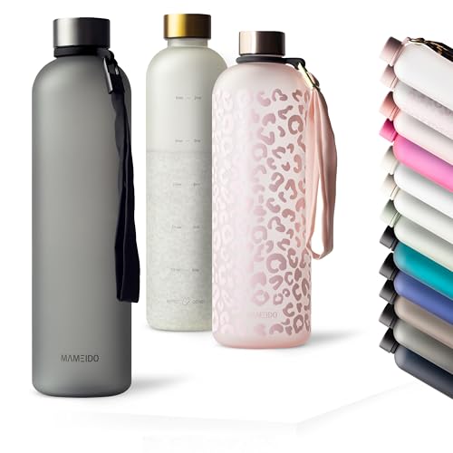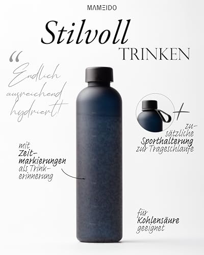 MAMEIDO Trinkflasche mit Zeitmarkierung 1 l Kohlensäure geeignet, auslaufsichere Water Bottle, Wasserflasche BPA frei für Sport, Gym & Büro (Rich Black)
