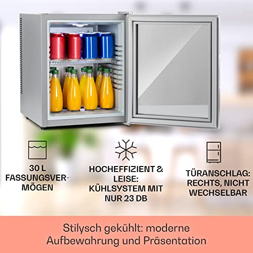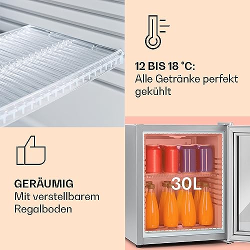 Klarstein Kühlschrank, Mini Kühlschrank mit Glastüre, Mini-Kühlschrank für Getränke, Snacks & Kosmetik, Kühlschrank Klein & Leise, Verstellbare Ablagen, Kleiner Skincare Kühlschrank 12-18°C, 32L
