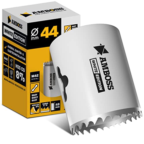 44 mm Amboss Bi-Metall HSS M42 Lochsäge - Für Stahl, Spanplatten, Hartholz, Gipskarton uvm. - Schnitttiefe 48 mm - ohne Aufnahme