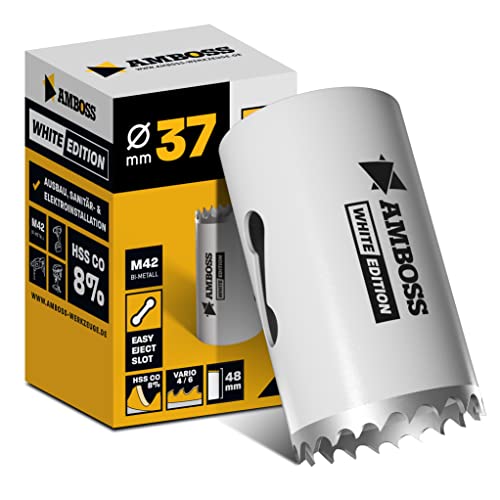 37 mm Amboss Bi-Metall HSS M42 Lochsäge - Für Stahl, Spanplatten, Hartholz, Gipskarton uvm. - Schnitttiefe 48 mm - ohne Aufnahme