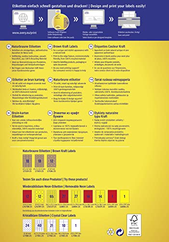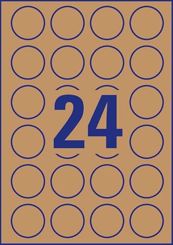 AVERY Zweckform L7105-25 Kraftpapier Etiketten (600 Aufkleber zum Bedrucken, Ø40mm auf A4, selbstklebend, runde Recycling Etiketten, nachhaltige Produktaufkleber) 25 Blatt, naturbraun