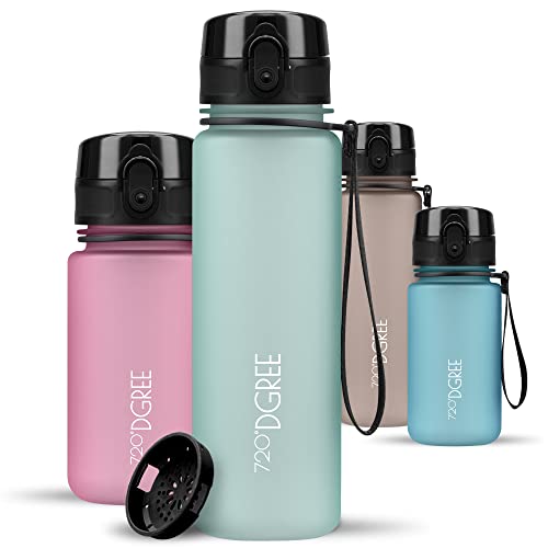 720°DGREE Trinkflasche Kinder 500ml “uberBottle“ softTouch +Sieb - Auslaufsicher, BPA-Frei - Flasche für Schule, Sport, Fitness - Wasserflasche aus Tritan - Schmal, Leicht, Stoßfest, Wiederverwendbar