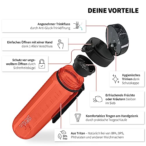 720°DGREE Kinder Trinkflasche 500ml “uberBottle“ crystalClear +Sieb - BPA-Frei, Auslaufsicher - Für Schule, Sport, Fitness - Schmale Wasserflasche aus Tritan - Leicht, Stoßfest, Wiederverwendbar
