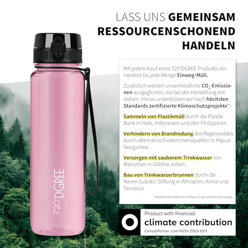 720°DGREE Trinkflasche 650ml “uberBottle“ crystalClear +Sieb - BPA-Frei - Auslaufsichere Wasserflasche für Kinder, Schule, Uni, Sport, Gym, Fitness - Sportflasche aus Tritan - Leicht, Stoßfest