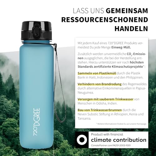 720°DGREE Trinkflasche 1l Sport “uberBottle“ softTouch +Sieb - BPA-Frei - Wasserflasche für Uni, Arbeit, Fitness, Fahrrad, Outdoor, Job - Sportflasche aus Tritan - Leicht, Stoßfest, Wiederverwendbar