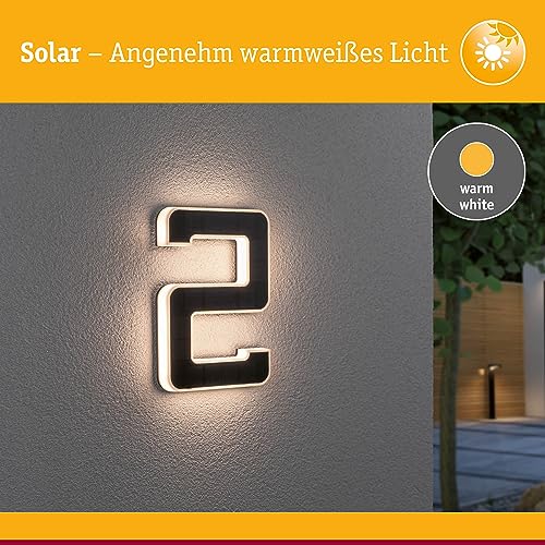 Paulmann 79843 LED Solar Hausnummer 2 IP44 Warmweiß Akku wechselbar incl. 1x0,2 Watt Solarleuchte Solarlampe Kunststoff Solarlicht 3000 K, Schwarz, Einheitsgröße