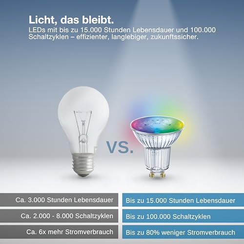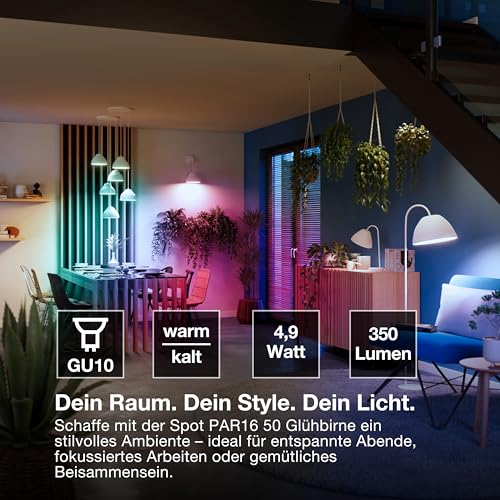 LED Smart+ Glas Reflektor 4,9W = 50W GU10 RGBW 2700K-6500K 45° Dimmbar App WiFi