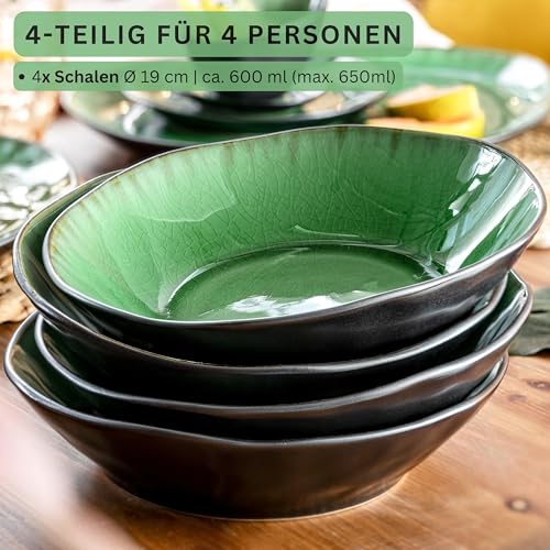 SÄNGER Suppenteller Set Palm Beach, Grün Schwarz, (4 St), 600 ml, Handmade, Premium Collection