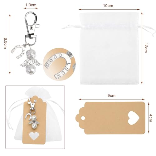 VGOODALL Gastgeschenke Hochzeit, 30 Stücke Schutzengel Anhänger +Organza Beutel +Kraftpapier Anhänger für Abschiedsgeschenk Glücksbringer Gastgeschenke Taufe Konfirmation Einschulung