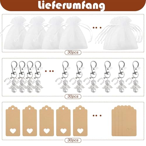 Gastgeschenke Hochzeit, 30 Stücke Schutzengel Anhänger +Organza Beutel +Kraft...