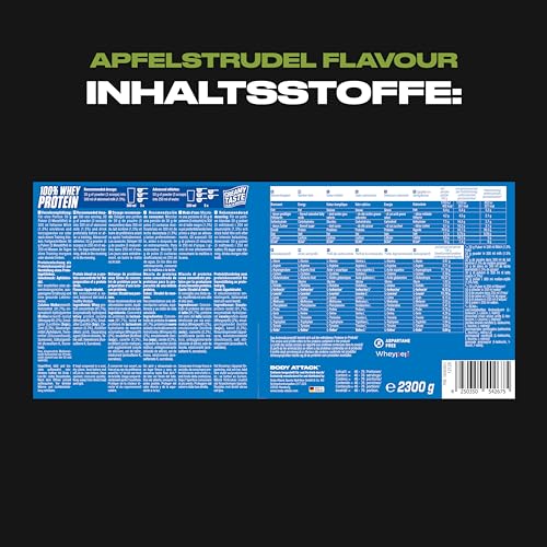 Body Attack 100% Whey Protein - Apfelstrudel - 2,3 kg - Made in Germany - Extra cremiges Eiweißpulver mit Hydrolysat & BCAA´s, unterstützt Muskelaufbau und Diäten - Für Sportler & Athleten