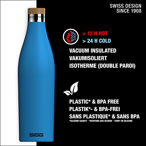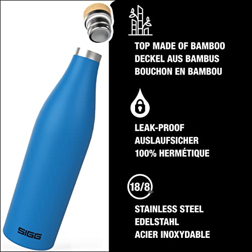 SIGG Meridian Electric Blue Trinkflasche (0.5 L), auslaufsichere Trinkflasche aus Edelstahl mit Bambus, Isolierflasche für kalte und heiße Getränke