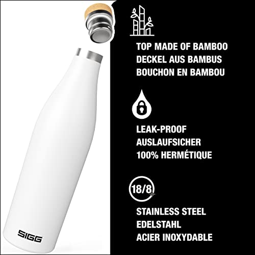 SIGG - Isolierte Trinkflasche - Meridian - Auslaufsicher - Extra schlank - BPA-frei - Plastikfrei - Doppelwandiger 18/8-Edelstahl - Bambus-Schraubverschluss - 0,5L / 0,7L, Weiß
