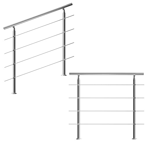 MONZANA Treppengeländer Edelstahl Innen und Außen Handlauf Geländer Brüstung Balkon 4 Querstreben, 120 cm