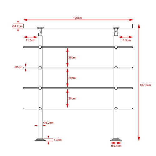 DeubaXXL DE Treppengeländer Edelstahl 120cm 4 Streben 108621