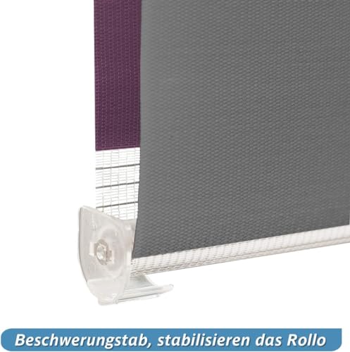 bobodeco Doppelrollo klemmfix ohne Bohren Duo Rollos für Fenster mit Klemmträger, Fensterrollo lichtdurchlässig & verdunkelnd Sichtschutz - Weiß Lila Anthrazit B40 x H120 cm