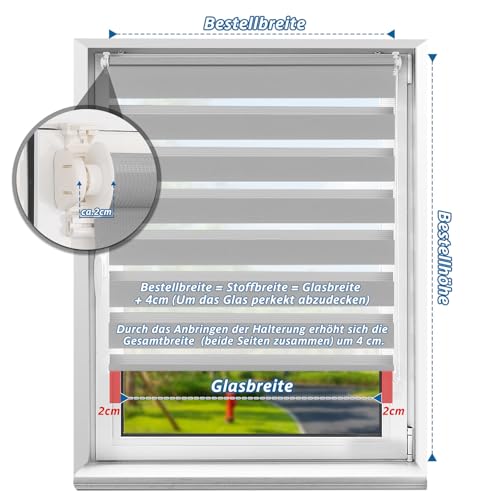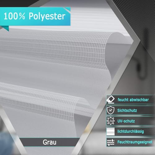 bobodeco Doppelrollo klemmfix ohne Bohren Duo Rollos für Fenster mit Klemmträger, Fensterrollo lichtdurchlässig & verdunkelnd Wandmontage Sichtschutz - Grau B50 x H120 cm