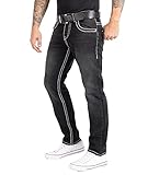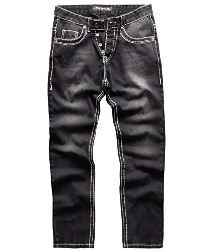 Rock Creek Herren Jeans Hose Comfort Fit Dicke Nähte Jeans Herrenjeans Herrenhose Denim Stonewashed Basic Weites Bein Raw RC-2169 Dunkelgrau W38 L38