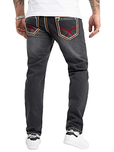 Rock Creek Herren Jeans Hose Comfort Fit Dicke Nähte Jeans Herrenjeans Herrenhose Denim Stonewashed Basic Weites Bein Raw RC-2168 Dunkelgrau W40 L30