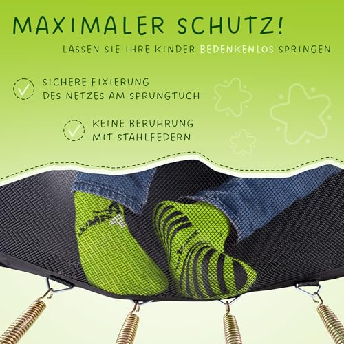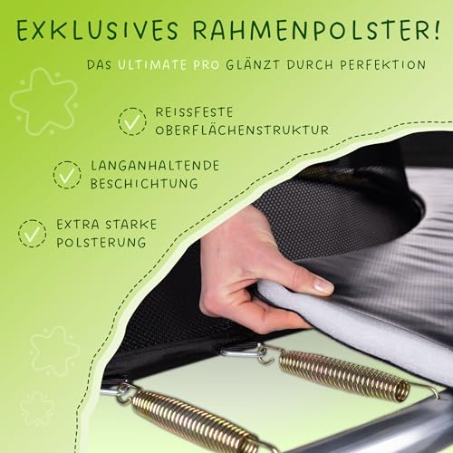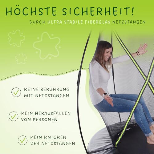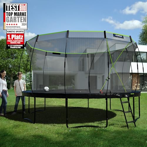 KINETIC SPORTS Trampolin Outdoor Ultimate Pro Ø 244/305/366/427 cm – TÜV Rheinland, Kindertrampolin mit Leiter, Gartentrampolin im Kürbis-Design, bis zu 160 kg Schwarz-Neongrün Ø 427 cm