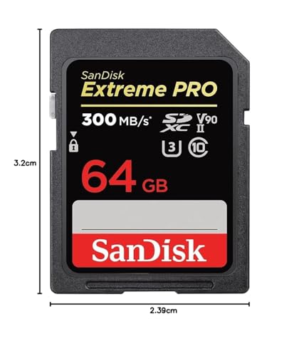 SanDisk Extreme PRO SDHC UHS-II Speicherkarte V90 64 GB (300 MB/s, 8K-, 4K- und Full-HD-Videoaufnahmen, RescuePRO Deluxe, stoßsicher, temperaturbeständig, wasserdicht und röntgensicher)