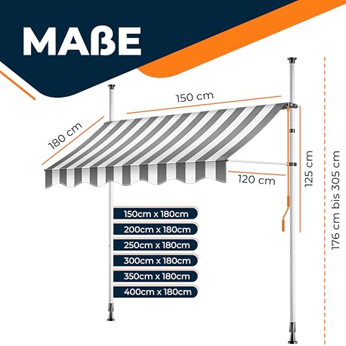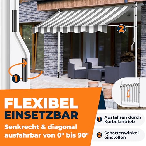 KESSER® Klemmmarkise mit Handkurbel Balkon, Balkonmarkise ohne Bohren, UV-beständig höhenverstellbar wasserabweisend , Sonnenschutz, Terrassenüberdachung , einfache Montage