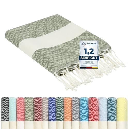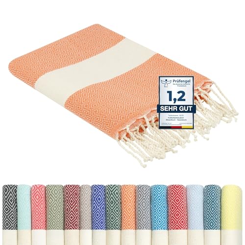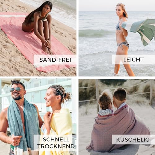 furora Holiday Strandtuch groß 100x200 cm: Baumwolle, leicht lang dünn kompakt - Premium Qualität | Hamamtuch Saunatuch, Fouta Strandhandtuch XXL | Damen & Herren Badetuch Stranddecke Picknickdecke
